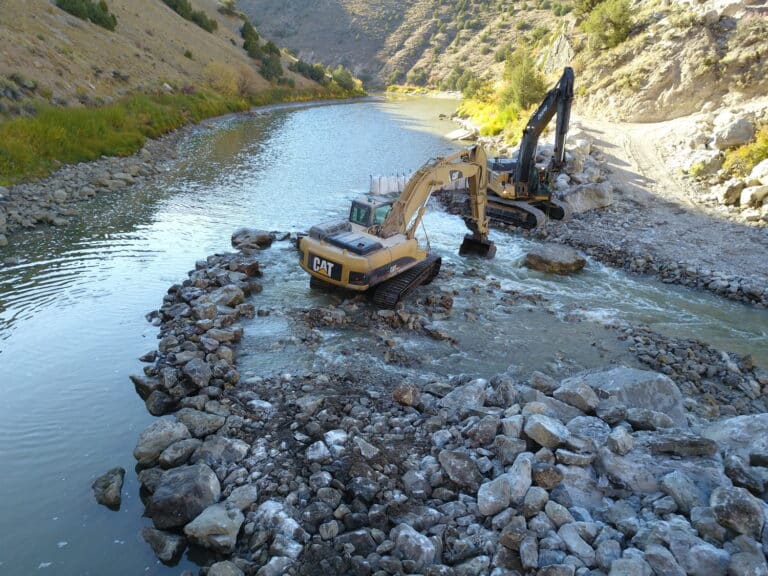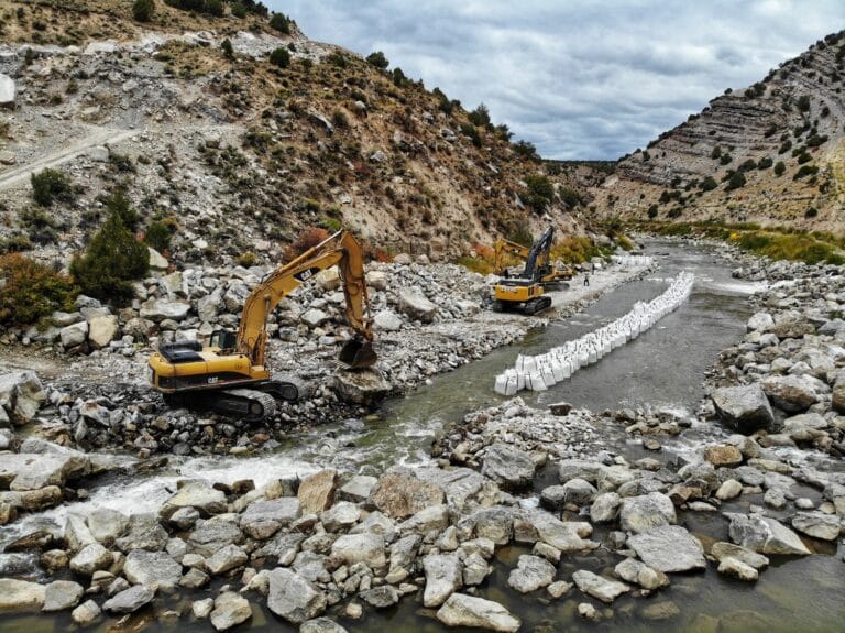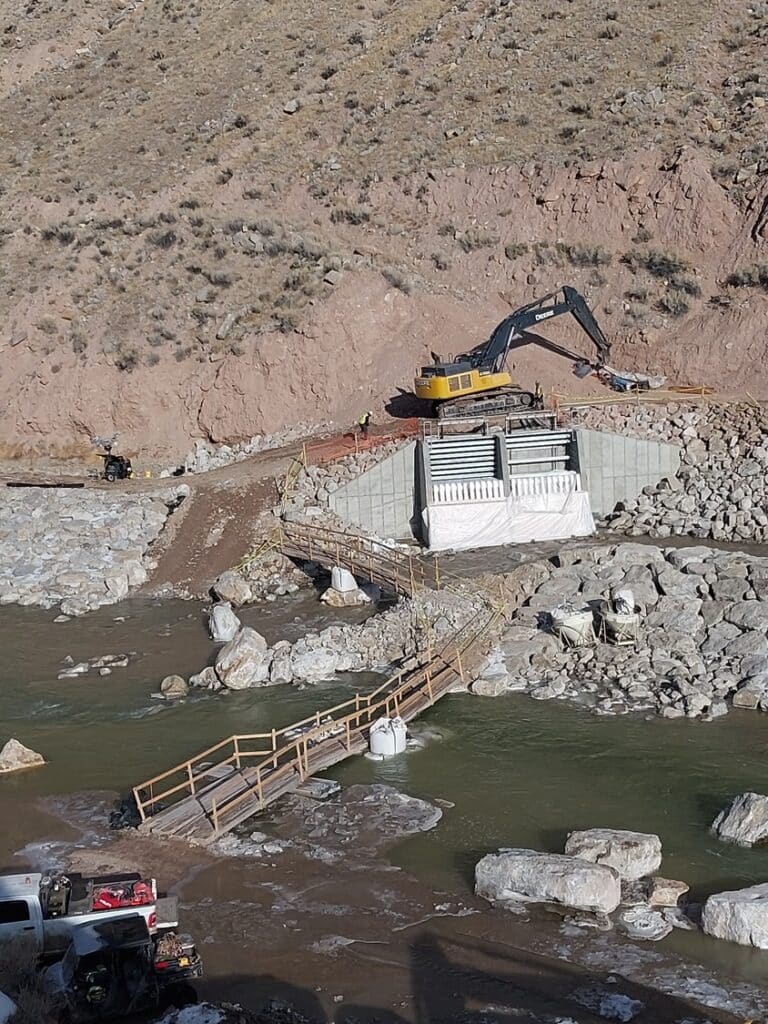 The Maybell Ditch is located in northwest Colorado on the Lower Yampa River, downstream of Craig and upstream of Dinosaur National Monument. The Maybell Diversion structure, hand-built in 1896, channels water through a headgate into the Maybell Ditch to irrigate pasture and ranchlands and provide livestock water. The 18-mile-long canal supports one of the largest irrigation systems in the Yampa River Basin, providing water for the Town of Maybell and agricultural producers. The Lower Yampa offers ample recreational opportunities and is home to abundant wildlife, including four threatened and endangered fish species. The Nature Conservancy and Maybell Irrigation District are working together to rehabilitate the diversion and modernize the headgate in conjunction with J-U-B Engineers and River Restoration as the design team and JHL Constructors as the construction firm. This multi-benefit project will improve irrigation efficiency, control of water, and boater safety, ensuring that the diversion provides water to those who need it while improving riparian habitat connectivity and fish passage in the Yampa River.