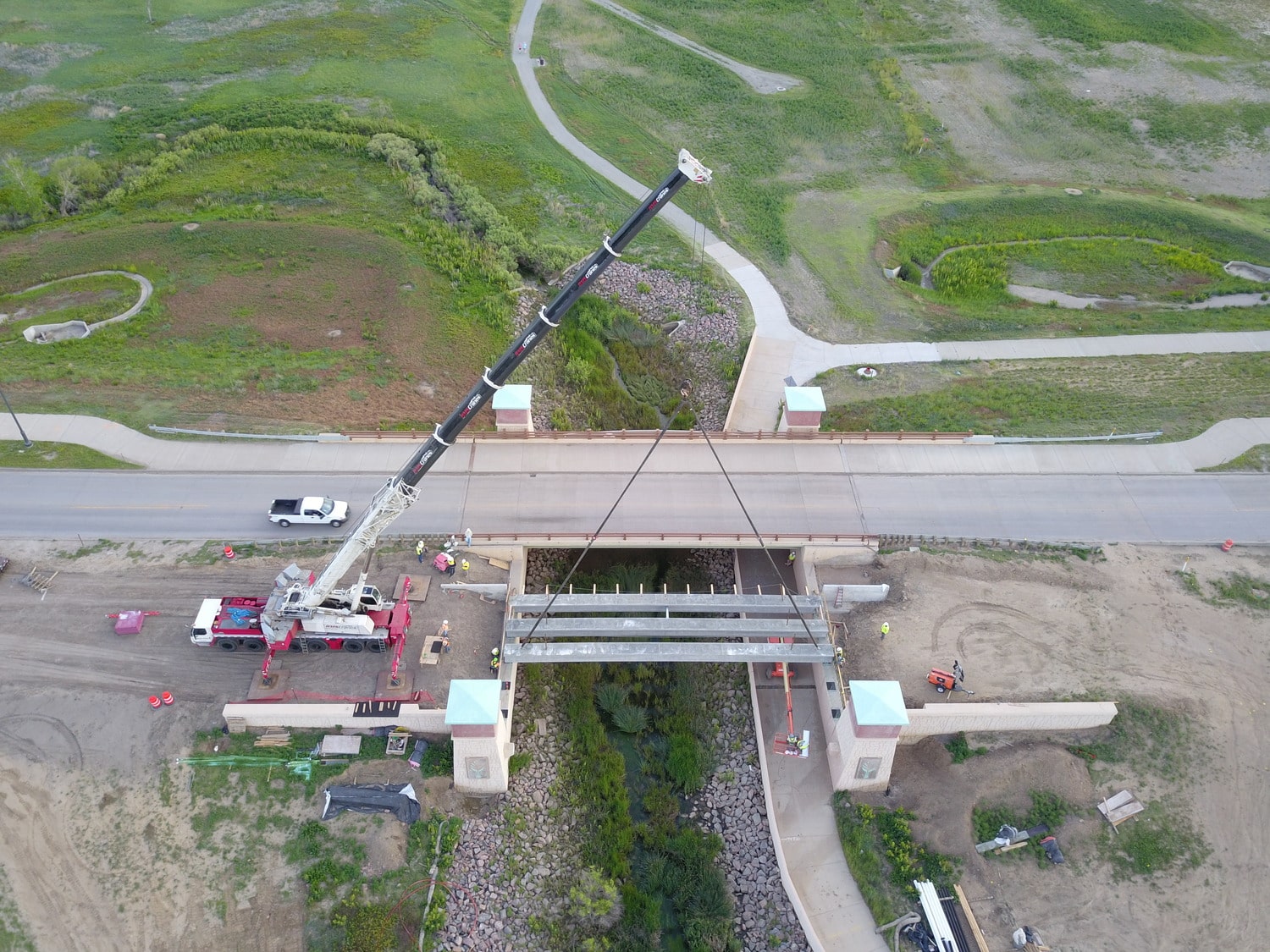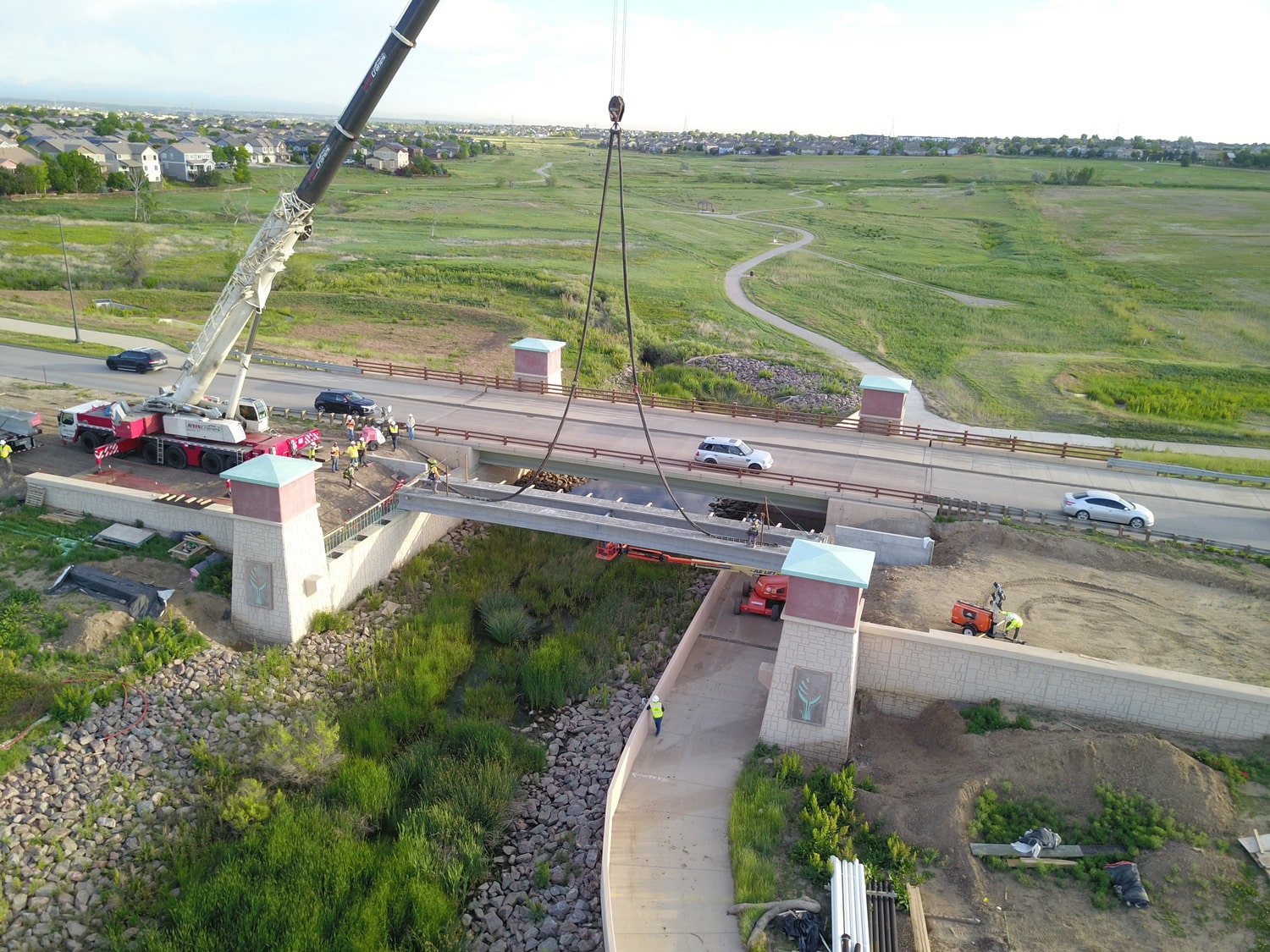 The scope of work includes adding lanes to the existing roadway, upgrading pavement and pedestrian walkways, and completing major utility installations and improvements. Utility work features the installation of new 12″ and 36″ potable water and irrigation lines for the South Adams County Water & Sanitation District (SACWSD), new storm sewer systems, and various other infrastructure upgrades.