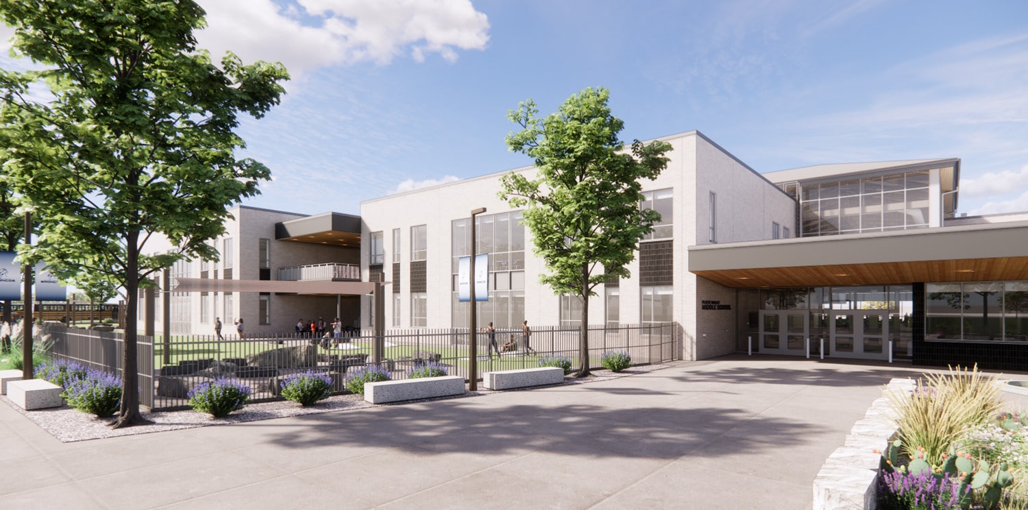 The PVSD Weld Re-7 Middle School project involves the construction of a new 126,423 square-foot replacement middle school located adjacent to the existing middle school. Designed to meet the modern educational needs of the district, the new facility will feature state-of-the-art classrooms equipped with the latest technology to enhance student learning. A spacious and functional kitchen will support meal preparation, complemented by a welcoming cafeteria designed to foster a sense of community among students and staff. The gymnasium will provide ample space for physical education classes, sports activities, and school events. The scope also includes comprehensive site development, such as new parking areas, improved access routes, landscaping, and outdoor spaces to support recreational and educational activities. This new middle school will create a dynamic and innovative environment that supports the district’s commitment to educational excellence.